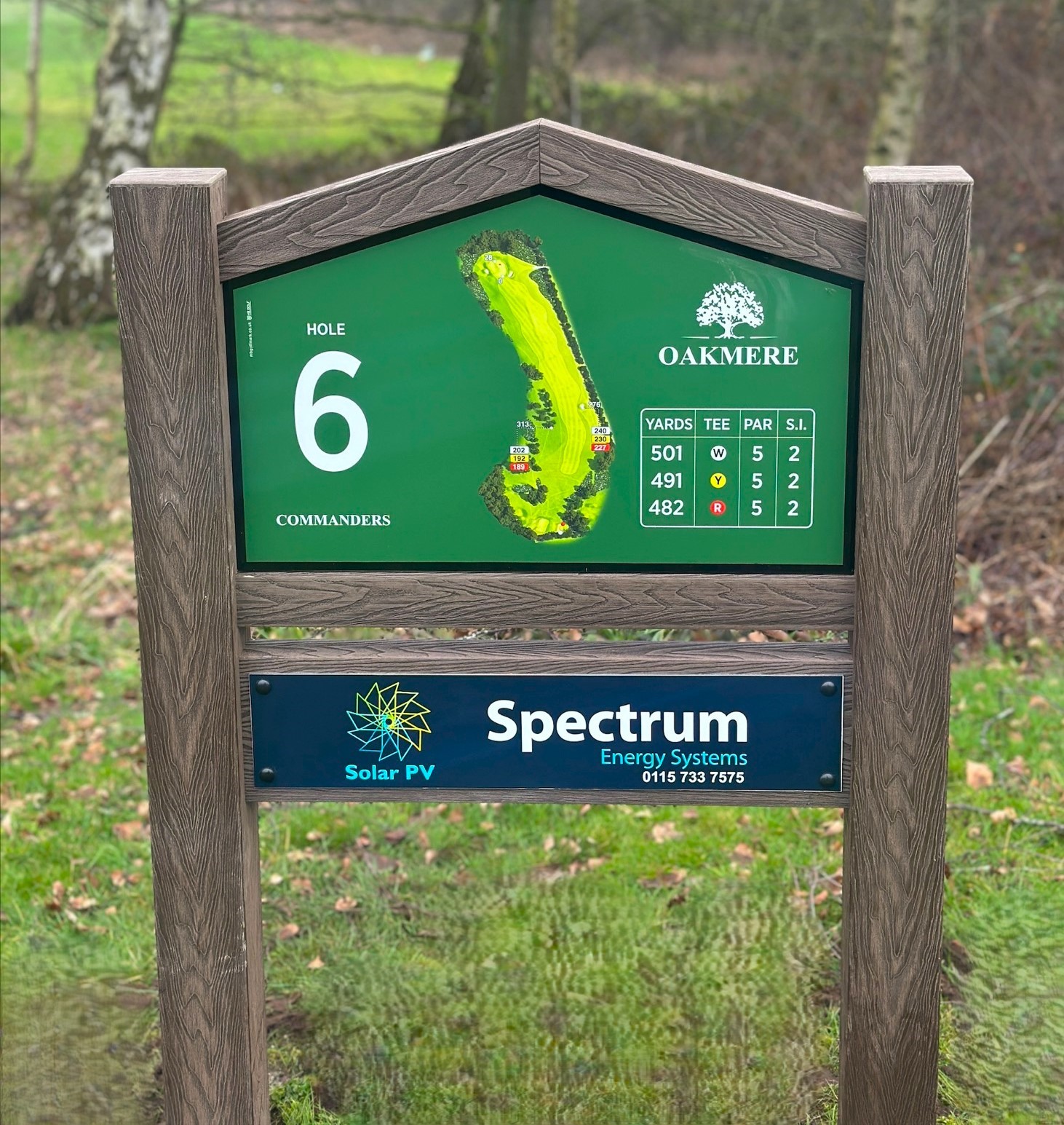 Pitched-top Twin-Post Tee Signs are available in light or dark ‘NEW syn-wood’