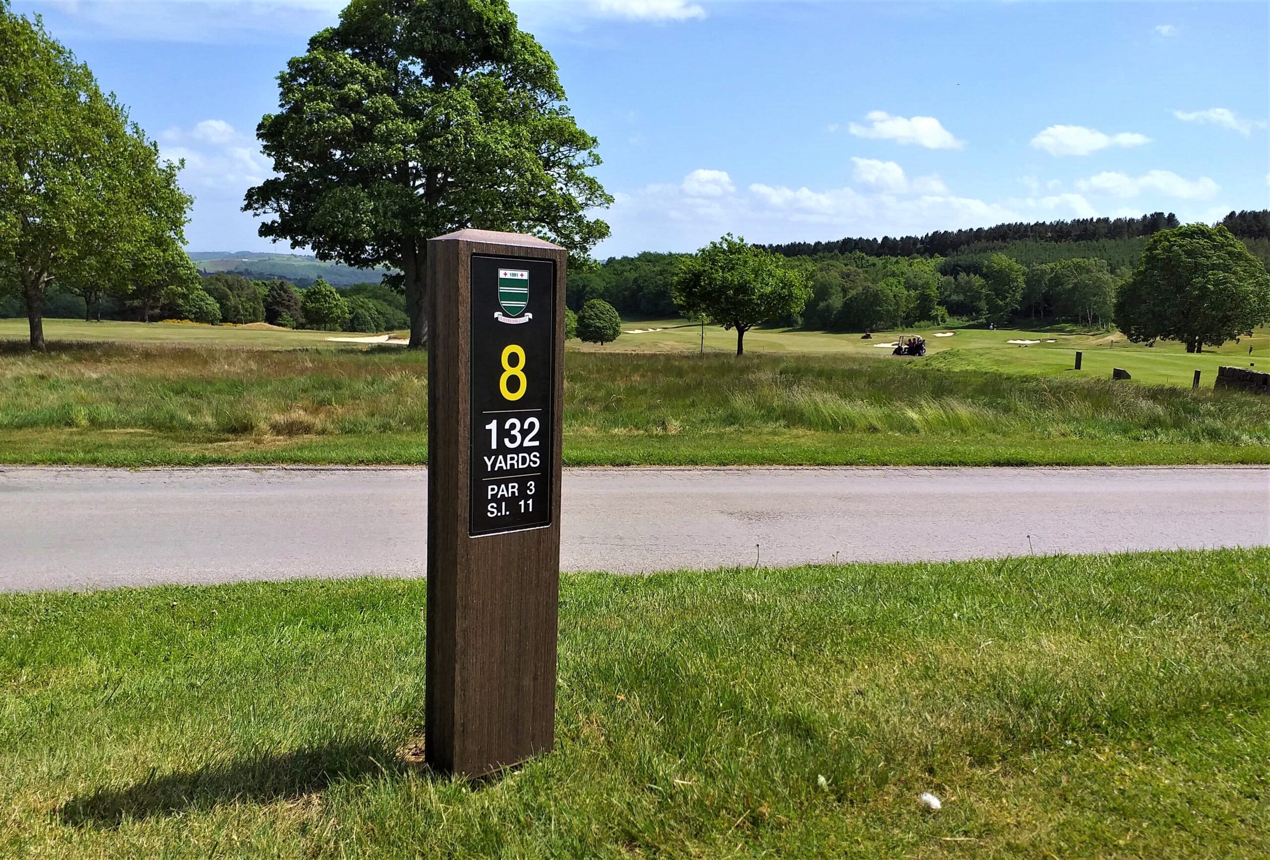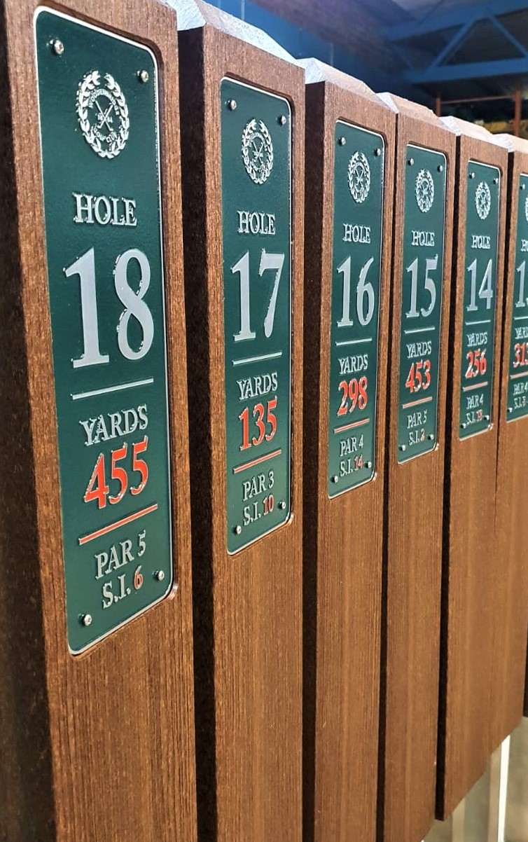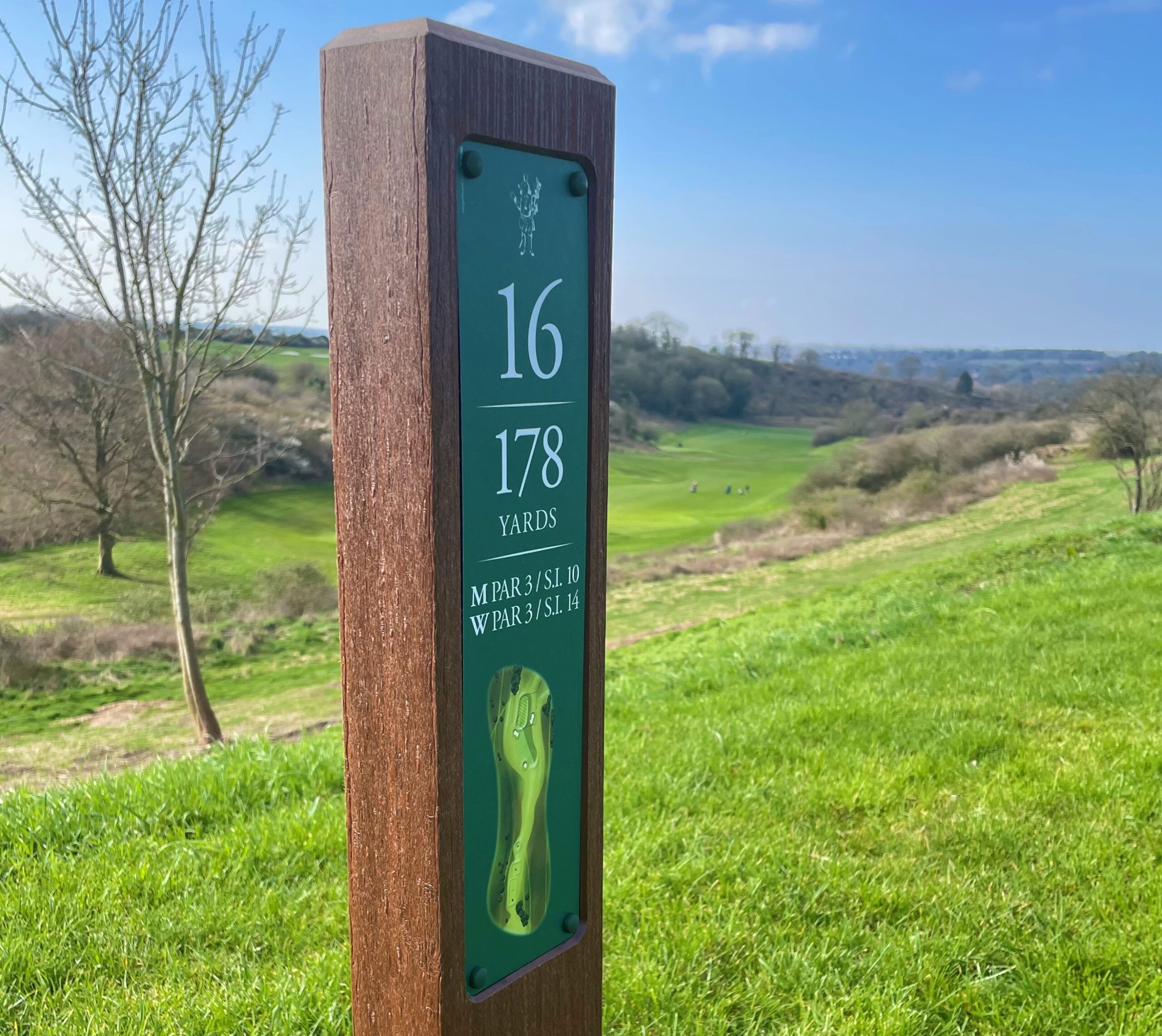 syn-wood Single-Post Tee-Signs are also available with an extended graphic plate allowing space for hole details but also the hole map.